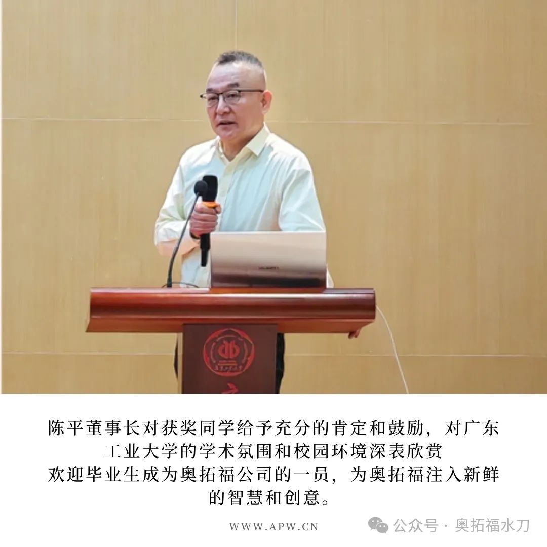 董事長為廣州工業(yè)大學優(yōu)秀學子頒發(fā)奧拓福水射流創(chuàng)新獎學金