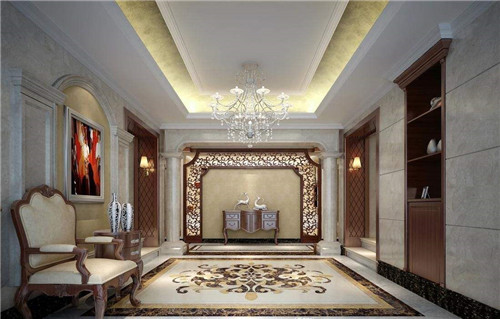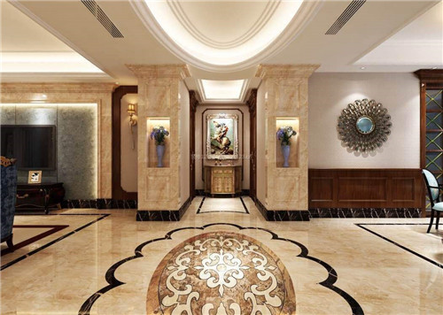 普通瓷磚都知道圖案是固定的,大小也固定幾個規格,因為批量化生產從而節約時間和成本。而水刀拼花不一樣,可以理解為定制的,可以根據客廳大小以及紋理設計適合的大小和圖案,也因此造就了水刀拼花這一市場。
