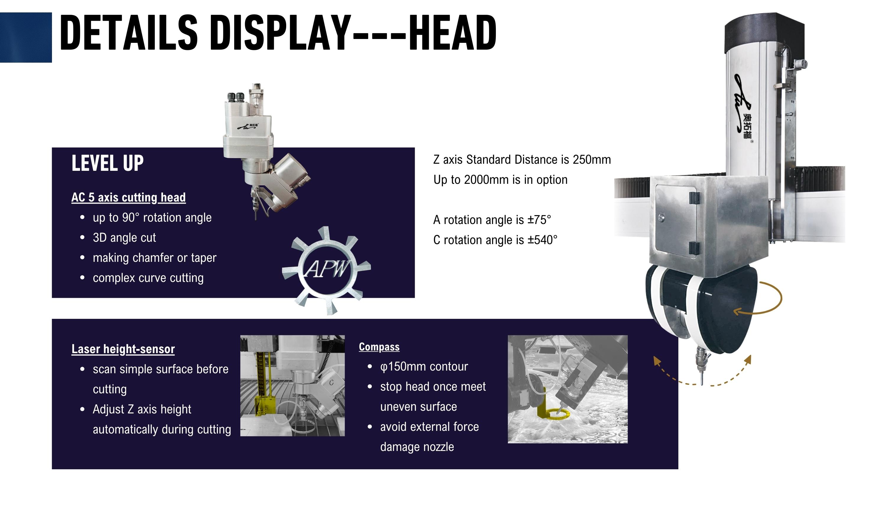 2、ACWZ-JET 大角度錐度切割刀頭:大角度5軸切割使用,適合復雜形狀和三維切割任務,支持大角度錐度切割,適用于航空航天、汽車制造等高精度加工場景。