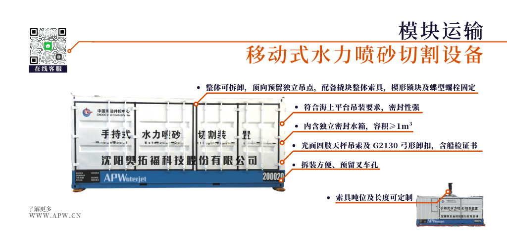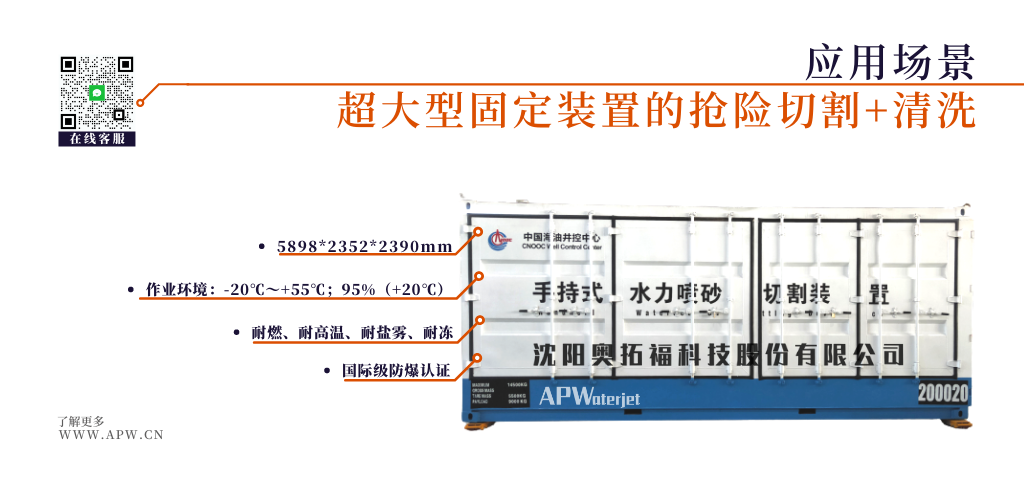 方案:手持式水利噴砂切割裝置; 泵組 420MPa 48L/min