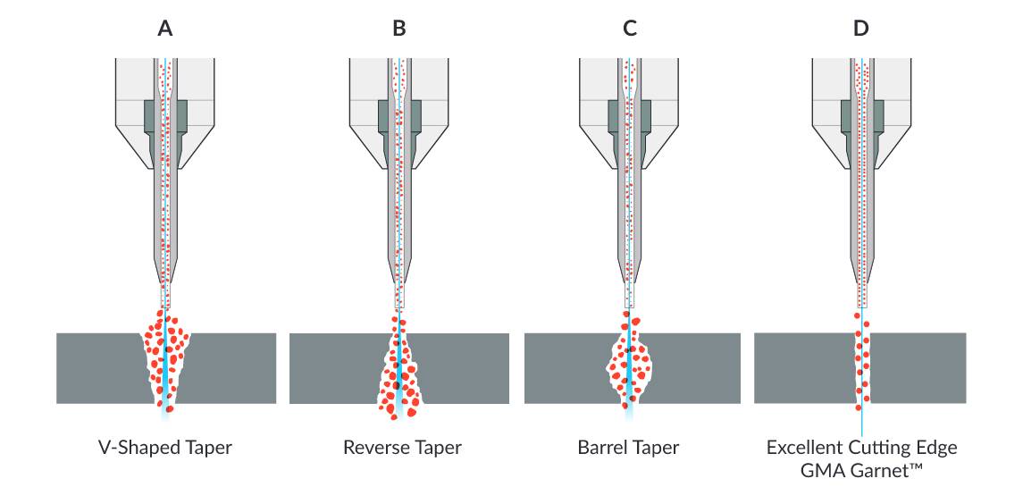 磨料水射流是磨料顆粒與高速流動的水混合后經噴嘴而形成的高能束射流,由于在高速水中混入一定數量的磨料顆粒,從而改變了射流的流動特性和對物體的作用方式