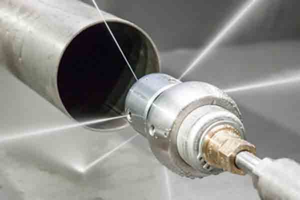 所謂水射流清洗,就是用水射流使一種或多種材料(附著層)從另外一種物體(基體)表面上脫離下來。如常見的洗清、去垢、除銹、打毛刺等都屬于清洗的范疇£別