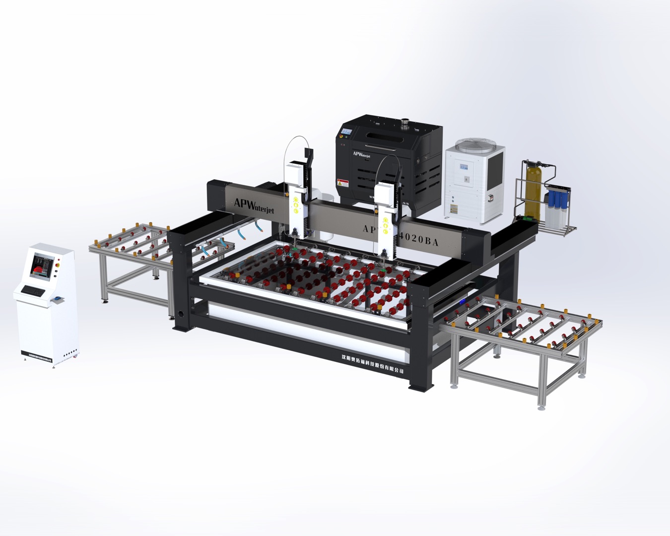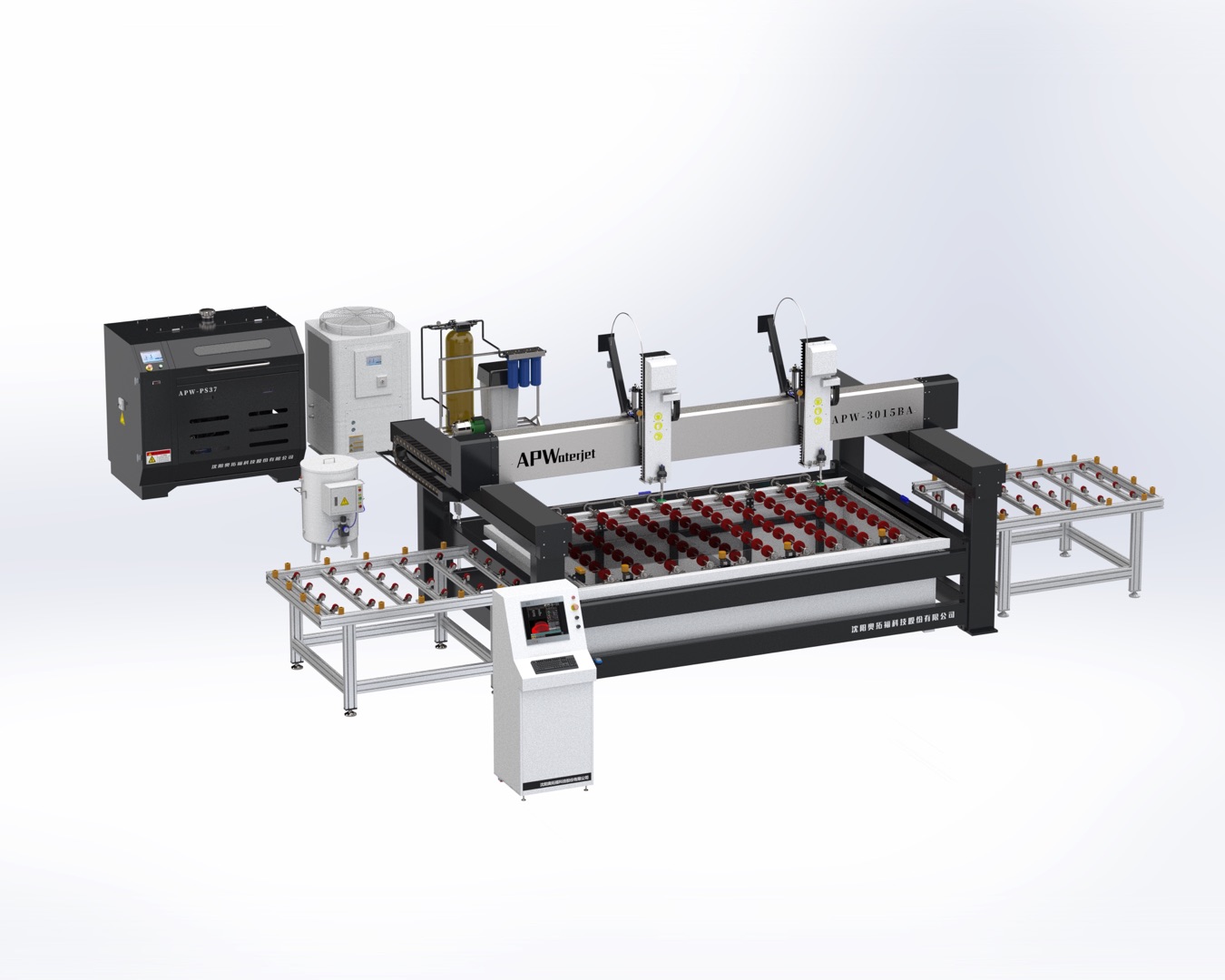 航空工業的一個重大需求是對大尺度曲面復合材料的機翼、尾翼和蒙皮的加工,由于機械加工對復合材料會產生分層、變形和劈裂等問題,美國波音公司已將超高壓五軸聯動水切割作為標準工藝,因此,催生了特大型水切割專用加工機床。