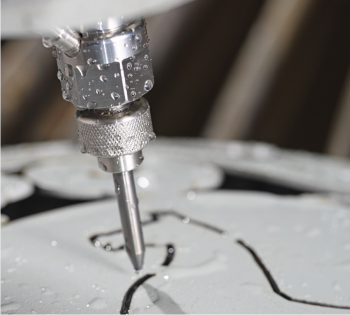 由于五軸偏擺切割頭的問世,磨料水射流噴嘴在任意方向上的精確偏擺轉動成為了可能,這是對磨料水射流切縫進行補償的必備條件之一。