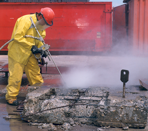 水射流用于混凝土工程方面的應用起始于20多年前。1972年,第一篇射流技術在混凝土工程中應用的論文,采用70MPa純水射流對混凝土塊進行切槽和鉆孔試驗,發現為達到可接受的工作效率,射流壓 力必須達到380MPa,機組功率要達到370kW。