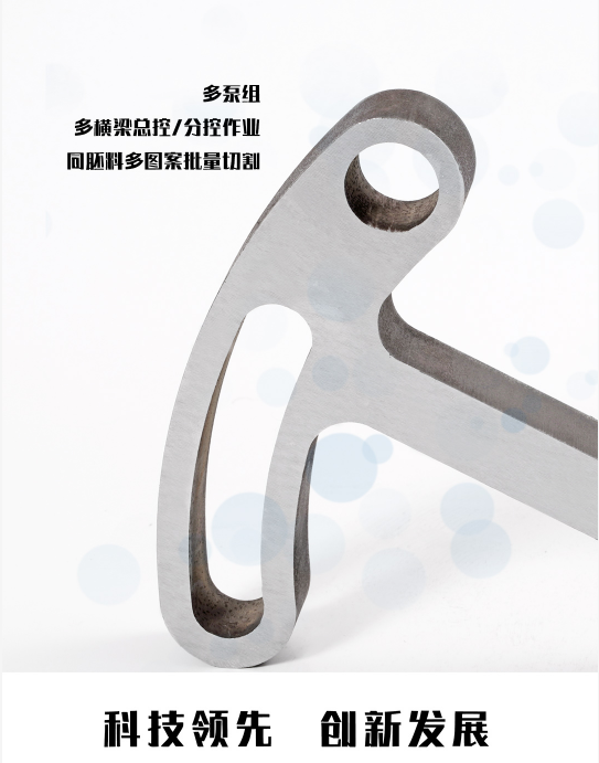 水射流切割技術以其諸多優點得到了越來越廣泛的應用,同時也展現了不同的發展趨勢。 目前的產品生產越來越向多品種、小批量、高 精度方向發展,提高設備的智能化程度是一個主要發展方向,最典型的 就是各種多軸、多維水射流加工系統的投入使用。