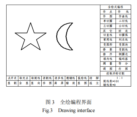 整套數控水刀軟件包括全繪編程、參數設置、矢量位圖、文件處理和幫助信息等幾大模塊。如圖3 所示、在全繪編程界面中,可以如AutoCAD軟件一樣方便地繪制所需的加工圖形,直接存儲為數控文件;并且不需要描點 掃描圖形也可以直接轉換成數控文件;也可以人工直接繪制形成數控文件。保存圖形后直接進行控制切割走刀。