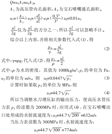 經過計算,從中讓我們認識到可以通過調整水刀增壓缸的輸出壓力,來控制水刀水射流速度,從而做到如何控制水射流的切割速度,以達到最大的切割效率和精度。