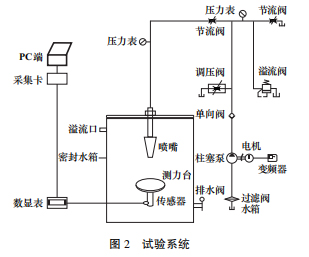 為研究高壓水射流與高壓磨料射流對剛壁沖擊力的分布規律,設計了高壓水射流測力系統,見圖 2。