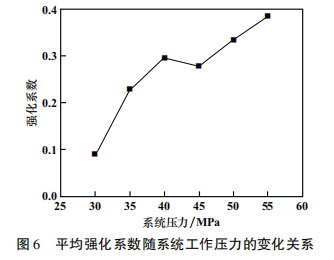 4) 在絕大部分系統工作壓力區段,平均強化系數隨工作壓力增大而增大,其強化效能與系統工作壓力呈正相關關系。