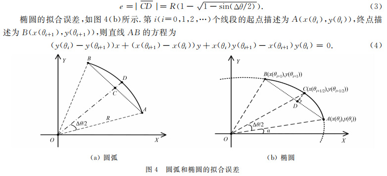 由式(3),(5)可知,圓弧半徑犚 和橢圓方程一定時,Δθ取值越小,則擬合誤差e越小。