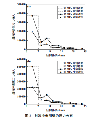 為了探討高壓純水射流和高壓磨料射流中沖擊剛壁射流沖擊壓力的分布規律,利用建立的專用測力工作臺,研究了射流方向與剛壁塵成90°角時沖擊壓力的分布規律及靶距、系統對工作壓力的影響。并對磨料進行強化效果進行分析。結果表明,靶距不變的情況下,純水射流的磨料射流,其中最高壓力的位置的沖擊力和系統壓力呈正相關